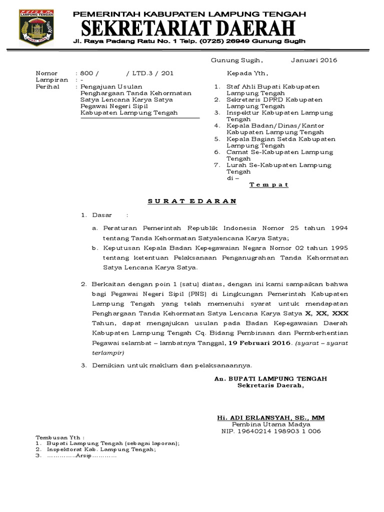 Surat Edaran Satya Lencana Pdf