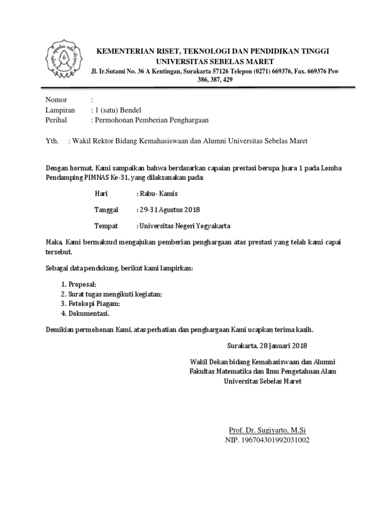 Surat Permohonan Penghargaan Pdf